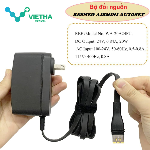 Adapter nguồn máy trợ thở Resmed 24V 20W chính hãng tháo máy - sự lựa chọn thay thế hoàn hảo giúp bạn có được dòng điện cấp tương thích và chuẩn xác nhất cho máy thở Resmed AirMini. Và tất nhiên không gì có thể đảm bảo hơn là các phụ kiện Adapter do chính hãng sản xuất bởi nó sẽ có độ tương thích và chuẩn dòng nhất cho thiết bị của hãng