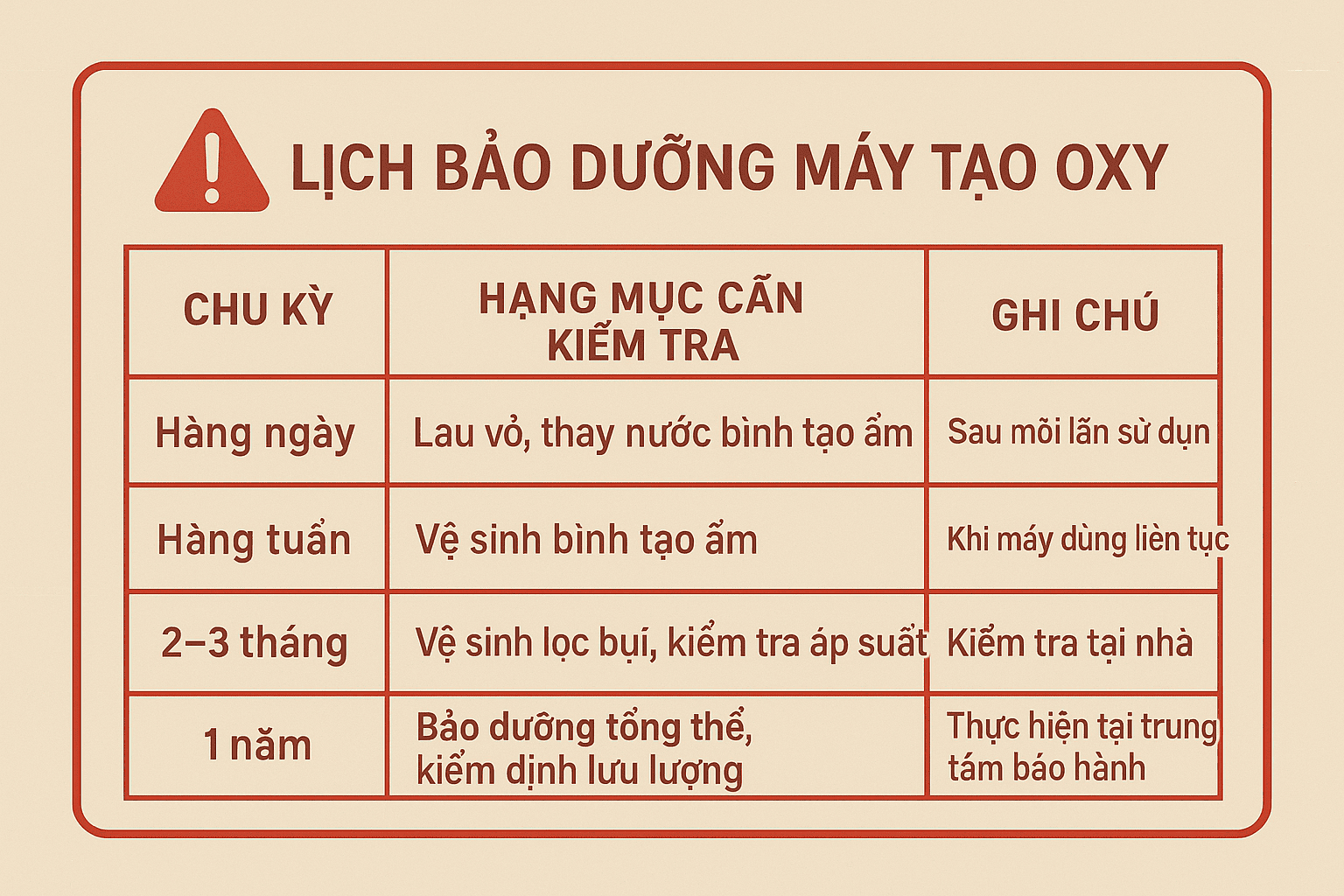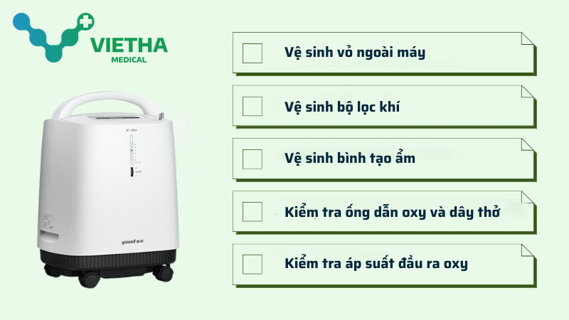 Vệ sinh và bảo dưỡng máy tạo oxy định kỳ là cách đơn giản nhưng hiệu quả nhất để kéo dài tuổi thọ thiết bị, đảm bảo nguồn oxy tinh khiết, an toàn cho người sử dụng.
