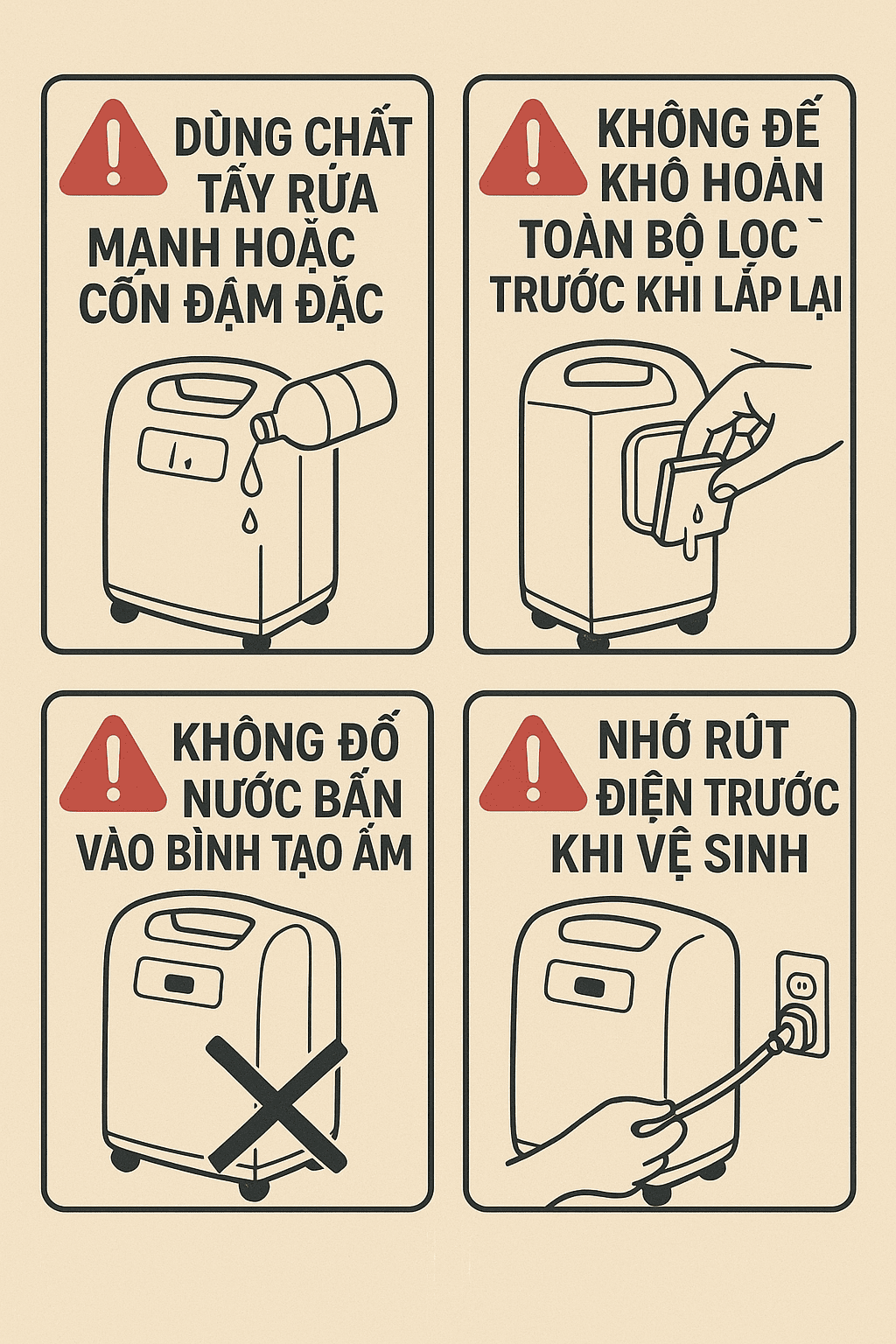 6. Những sai lầm thường gặp khi vệ sinh máy tạo oxy