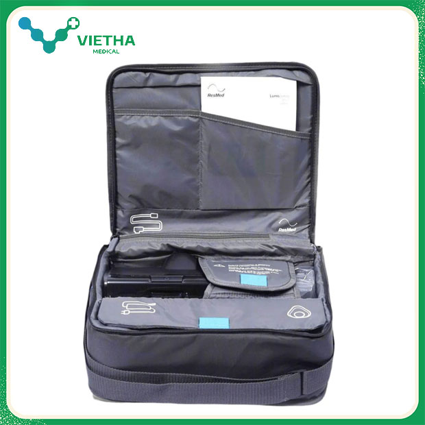 Nếu bạn đang sử dụng dòng máy thở ResMed thế hệ thứ 10 như AirSense, Airstart, AirCurve hoặc Lumis 150 thì chắc chắn cặp đựng máy thở ResMed Air10 là phụ kiện không thể thiếu. Đây là chiếc túi xách chuyên dụng được thiết kế bởi ResMed, giúp bảo vệ máy, dễ dàng di chuyển, và đảm bảo an toàn tuyệt đối cho thiết bị hô hấp của bạn.
