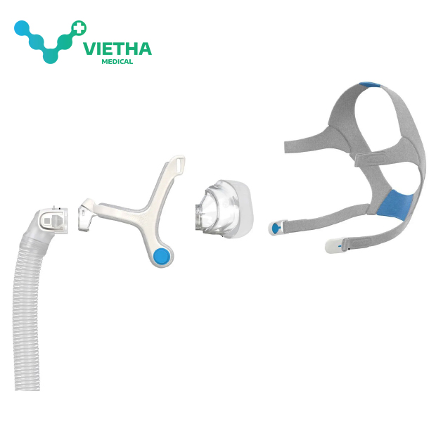 AirFit N20 ResMed có thiết kế tối giản hơn, thay vì bao quanh mũi miệng, thì mặt nạ chỉ bao quanh mũi, tạo cảm giác gọn nhẹ hơn cho khuôn mặt của người dùng.