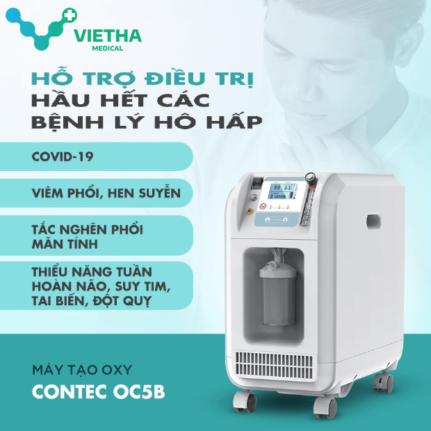 Contec OC5B là loại thiết bị lấy không khí từ bên ngoài và loại bỏ đi khí Nito, khí khác ra khỏi nó để lại 1 loại khí giàu oxy với nồng độ tinh khiết trên 90% để sử dụng cho những người cần oxy do lượng oxy trong máu của họ thấp