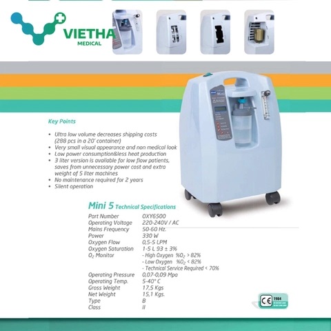 Cơ chế vận hành: Hoạt động cung cấp lưu lượng oxy liên tục 5 lít/ phút