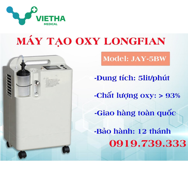 Máy tạo oxy JAY-B5W từ thương hiệu LONGFIAN – chuyên gia sản xuất máy tạo oxy và thiết bị y tế có kinh nghiệm trong nhiều năm liền, được tin cậy tại hơn 100 nước trên thế giới. Sản phẩm có khả năng tạo oxy y tế có nồng độ đạt từ trên 93% tức thời và liên tục trong nhiều giờ liền. JAY-B5W là giải pháp cung cấp nguồn oxy sạch trong điều trị các bệnh lý về đường hô hấp, bệnh nhân tim mạch, suy phổi, bệnh nhân nhiễm Covid-19.