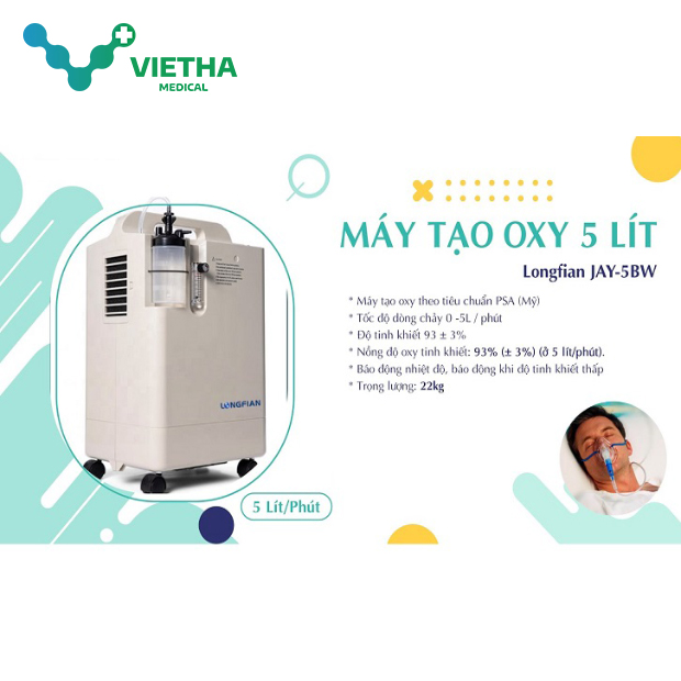 Phù hợp cho nhiều đối tượng: LONGFIAN JAY-B5W là giải pháp cung cấp oxy y tế tối ưu cho người bệnh đang điều trị bệnh lý về hô hấp như ho, hen suyễn, viêm phế quản, viêm phổi, phổi tắc nghẽn mãn tính, bệnh nhân Covid-19…