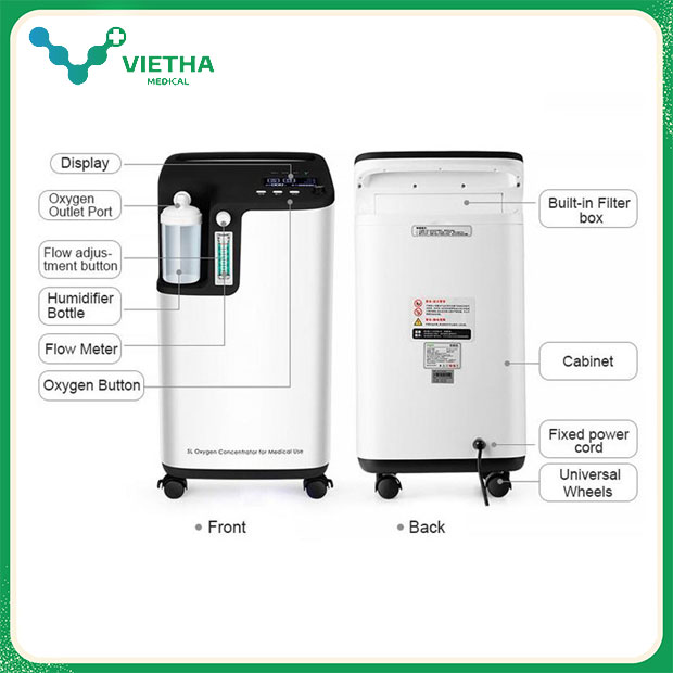 Với thiết kế bánh xe chắc chắn và tay kéo tiện lợi, người bệnh hoặc người nhà có thể dễ dàng di chuyển máy trong nhà mà không cần nhấc hay bê nặng.