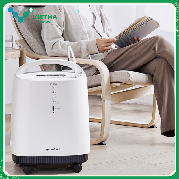 - Máy tạo oxy 5 lít Yuwell 9F-5BW với dung tích tạo oxy từ 1 lít đến 5 lít/phút,nồng độ oxy luôn đạt chuẩn y tế 93%, máy phù hợp với những người có nhu cầu cung cấp oxy sử dụng thường xuyên.