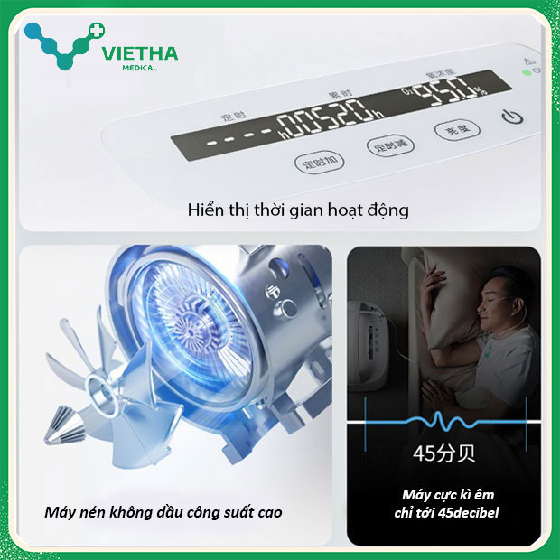 - Máy hoạt động êm ái nhẹ nhàng, di chuyển dễ dàng. Với giá thành rẻ tiện lợi hơn so với việc phải sử dụng bình oxy (bình oxy khi hết khí phải đi nạp) máy tạo oxy có thể hoạt động bất cứ lúc nào, bất cứ nơi đâu khi cung cấp đủ nguồn điện cho nó.