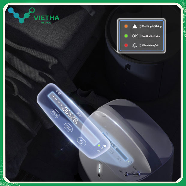 - Máy Yuwell 9F-5BW được trang bị 4 chức năng vận hành thông minh gồm: cảnh báo nồng độ oxy thấp, lỗi máy nén, lỗi tuần hoàn, lỗi ngắt điện. Nhờ đó bạn có thể nắm bắt tình trạng của máy để có phương án xử lý kịp thời