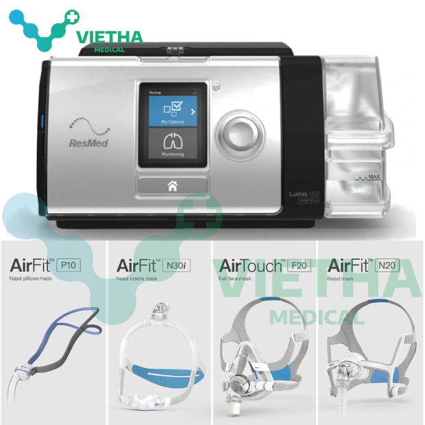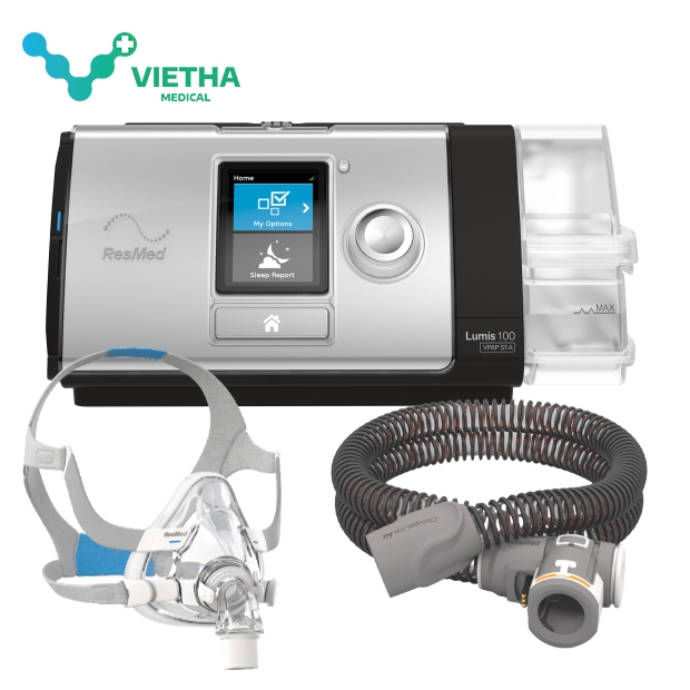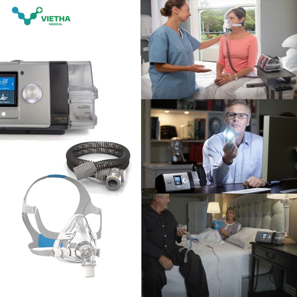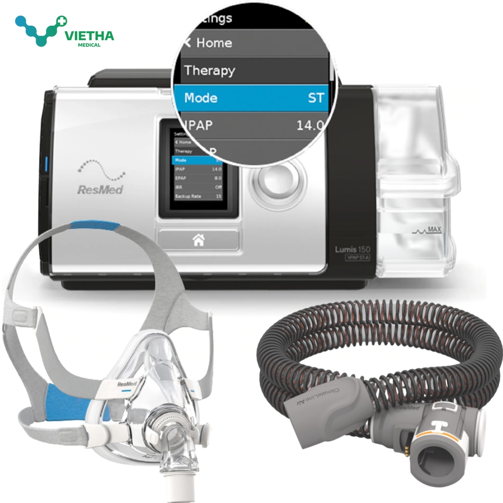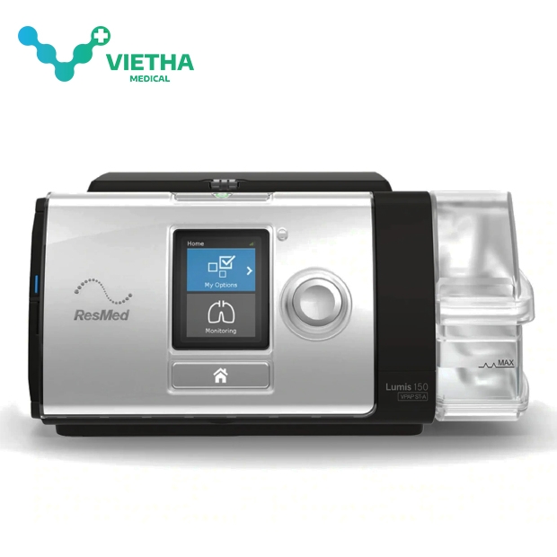 ResMed Lumis 150 ST là dòng máy thở không xâm lấn với 2 mức áp ực dương khác nhau IPAP ở thì hít vào và EPAP ở thì thở ra chuyên sử dụng điều trị cho các bệnh nhân giảm thông khí như phổi tắc nghẽn mãn tính COPD, suy hô hấp, béo phì, ngưng giảm thở khi ngủ,...