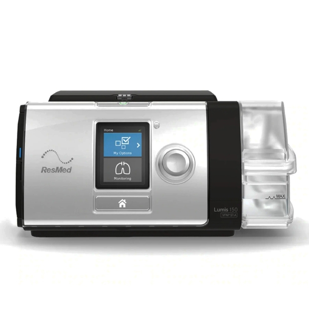 ResMed Lumis 150 ST-A là dòng máy thở không xâm lấn với 2 mức áp ực dương khác nhau IPAP ở thì hít vào và EPAP ở thì thở ra chuyên sử dụng điều trị cho các bệnh nhân giảm thông khí như phổi tắc nghẽn mãn tính COPD, suy hô hấp, béo phì, ngưng giảm thở khi ngủ,...