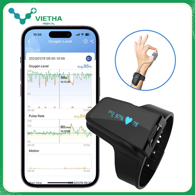 Ghi chỉ số SpO₂, nhịp tim và vận động mỗi 2 giây – cho kết quả cực kỳ chi tiết, phù hợp với chuẩn đánh giá OSA, COPD.