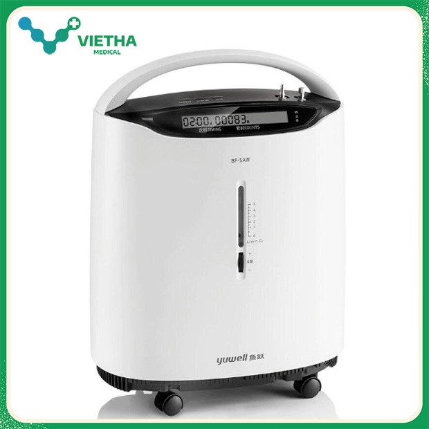 Một phiên bản khác rất được ưa chuộng từ nhà Yuwell - 8F-5AW có thiết kế chắc chắn nhỏ gọn, dễ sử dụng, màn hình hiển thị rõ ràng. Máy có thể dùng liên tục ngày đêm, hoạt động ổn định trong thời gian dài, rất phù hợp với bệnh nhân điều trị dài hạn tại nhà.